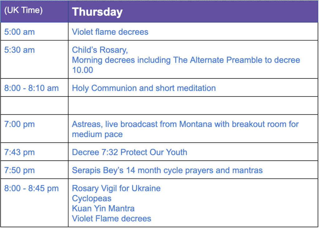 The Summit Lighthouse Virtual Study Group offers daily decree services and weekly study groups on Zoom. Please contact us if you wish to attend any of these events.